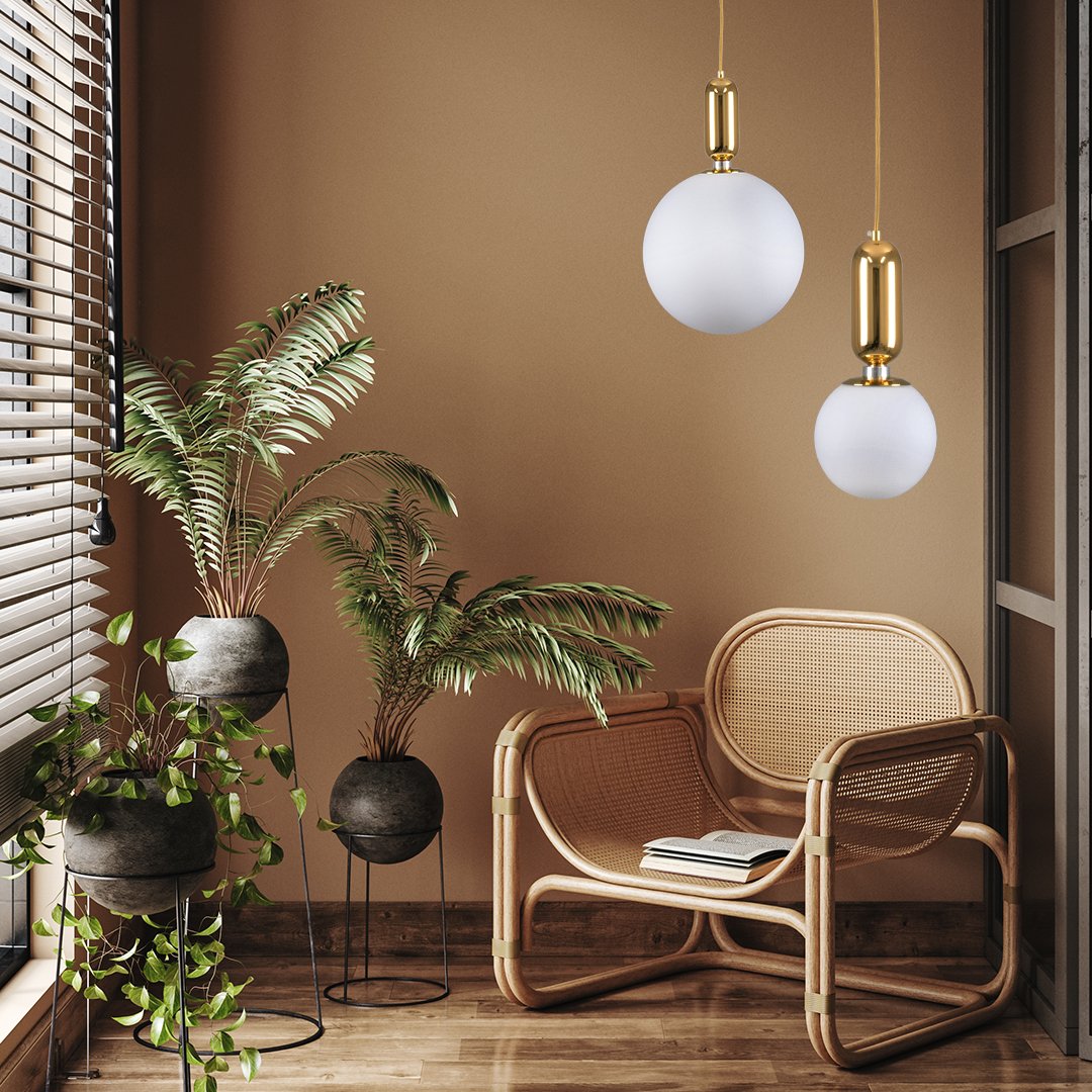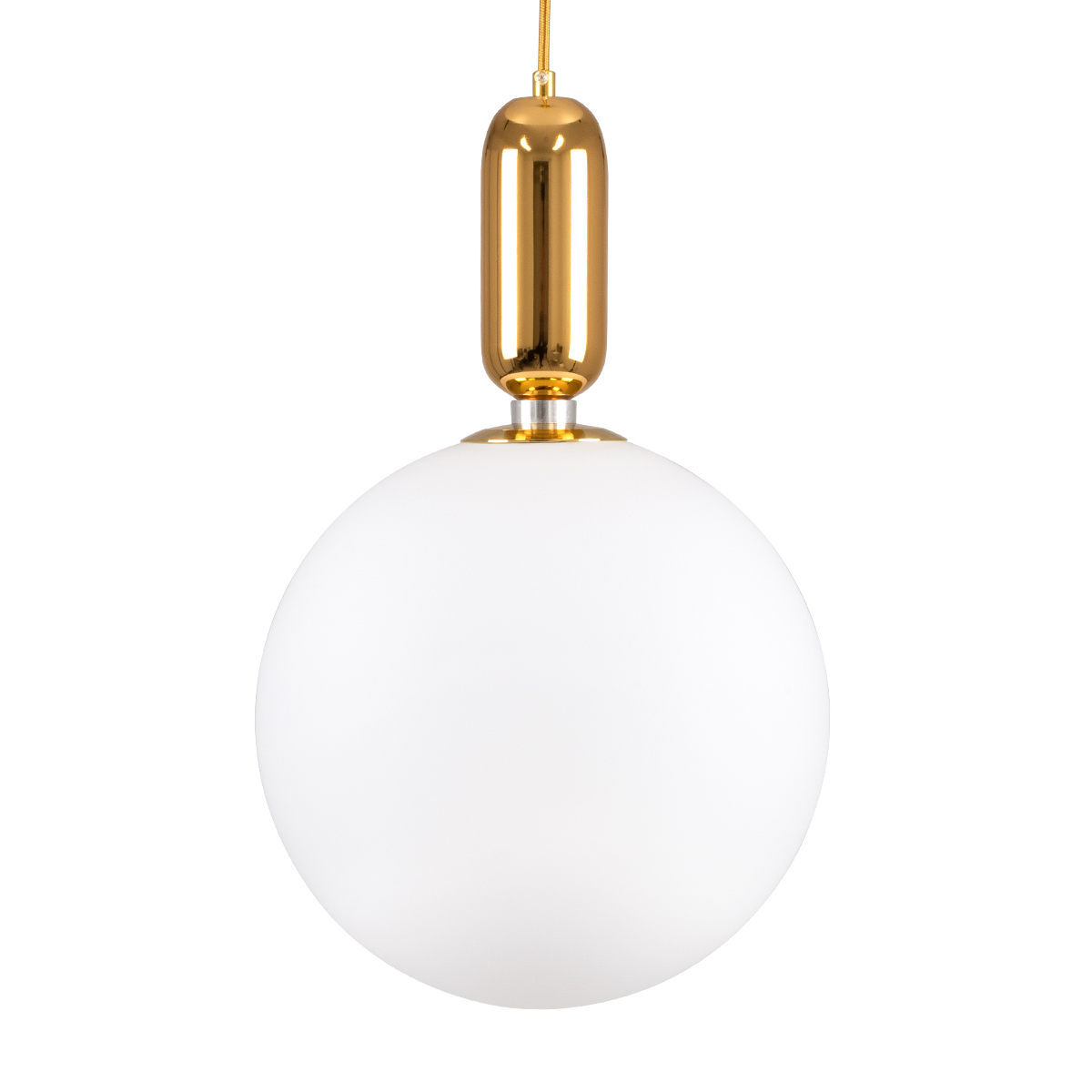 GloboStar® MAVERICK 00940 Μοντέρνο Κρεμαστό Φωτιστικό Μπάλα Μονόφωτο 1 x E27 IP20 Χρυσό Μέταλλο με Λευκό Γυαλί - Μ30 x Π30 x Υ48cm