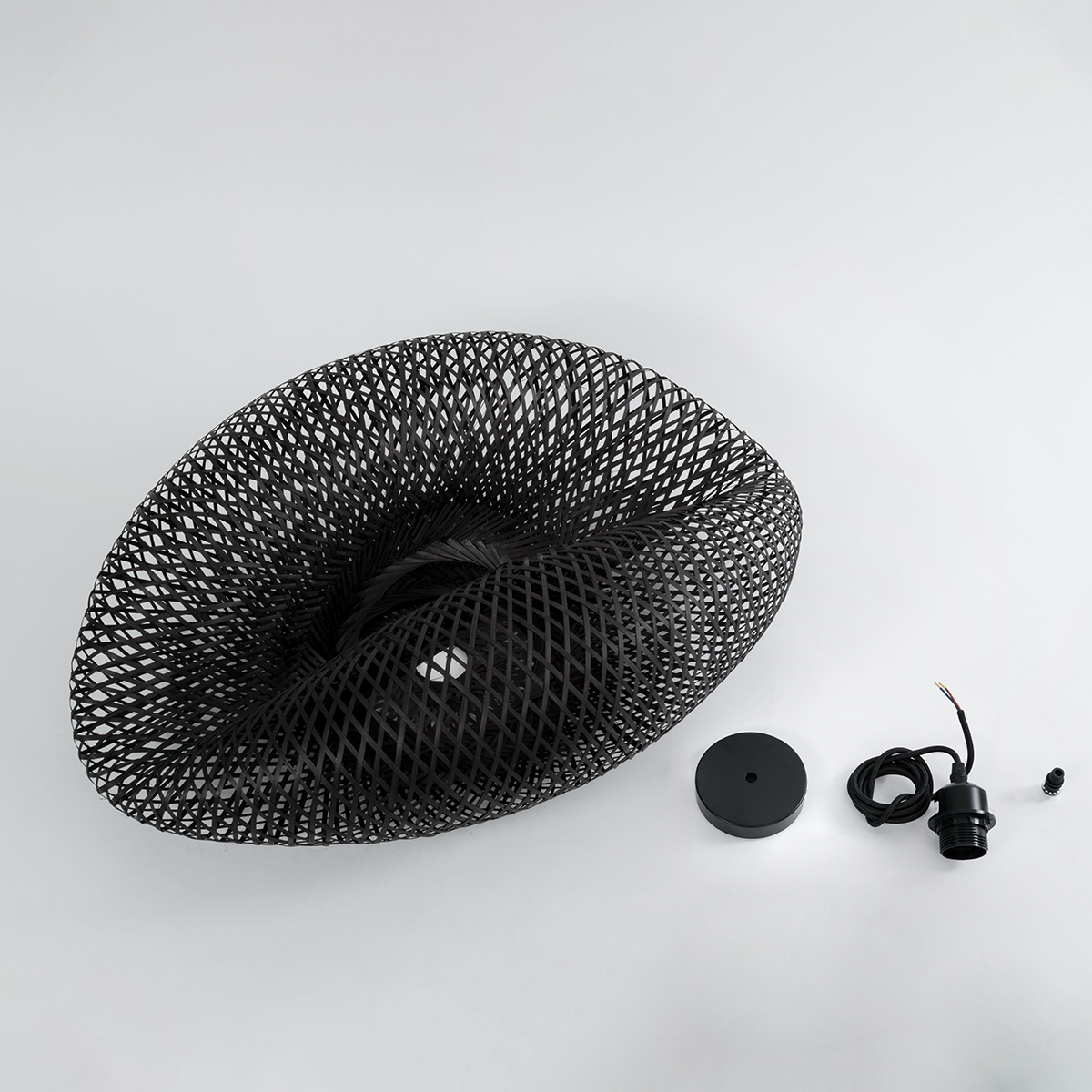 GloboStar® MEXICO 02201 Boho Κρεμαστό Φωτιστικό Πλέγμα Μονόφωτο 1 x E27 IP20 Μαύρο Ξύλο - Μ65 x Π45 x Υ18cm