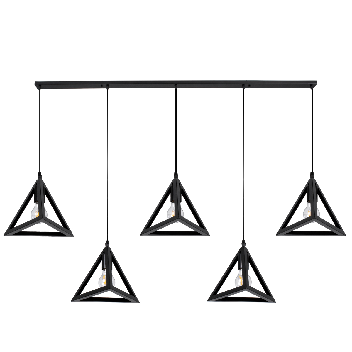 GLOBOSTAR® TRIANGLE 00608 Μοντέρνο Κρεμαστό Φωτιστικό Οροφής με Ντουί 5 x E27 AC 220-240V IP20 - Μαύρο - Μ170 x Π22 x Y130cm