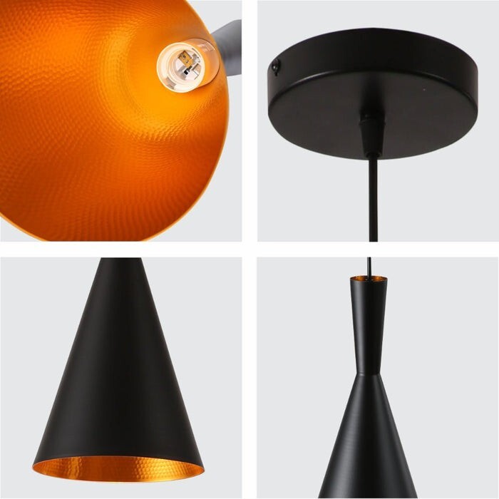 Το φωτιστικό "Astra Cone" είναι ένα μοντέρνο μονόφωτο κρεμαστό φωτιστικό σε μαύρη απόχρωση με εσωτερικό χάλκινο φινίρισμα. Η κομψή του σχεδίαση τύπου «καμπάνα» το καθιστά ιδανικό για σύγχρονους και industrial χώρους, όπως κουζίνες, τραπεζαρίες, μπαρ ή επαγγελματικούς χώρους φιλοξενίας. Το μεταλλικό του σώμα προσφέρει ανθεκτικότητα και υψηλή αισθητική, ενώ η βάση του είναι εύκολη στην τοποθέτηση. Συνδυάζεται με λάμπες E27 για εύκολη αντικατάσταση και επιλογή έντασης φωτισμού ανάλογα με τις ανάγκες σας.