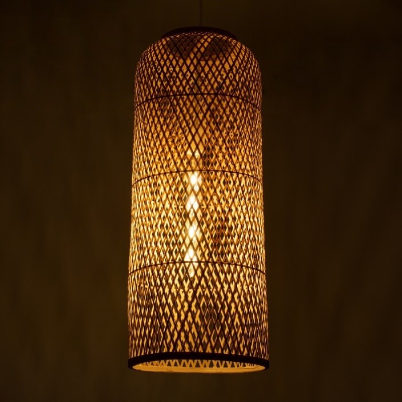 Bamboo Tower - Κρεμαστό Μονόφωτο E27 Boho Μπαμπού Φυσικό Πλέγμα - Μ25 x Π25 x Υ50cm