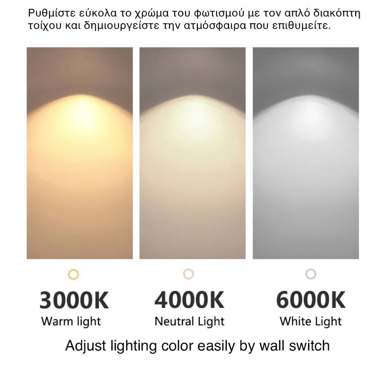 - Χρώμα φωτός: Ρυθμιζόμενο CCT Λευκό - Ημέρας - Θερμό