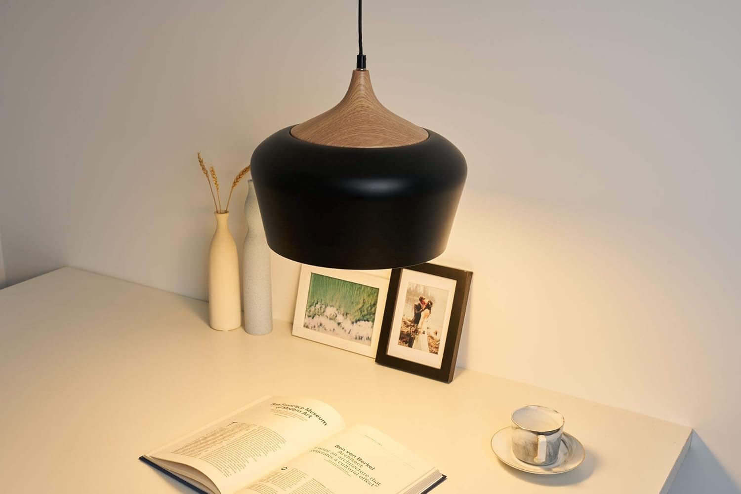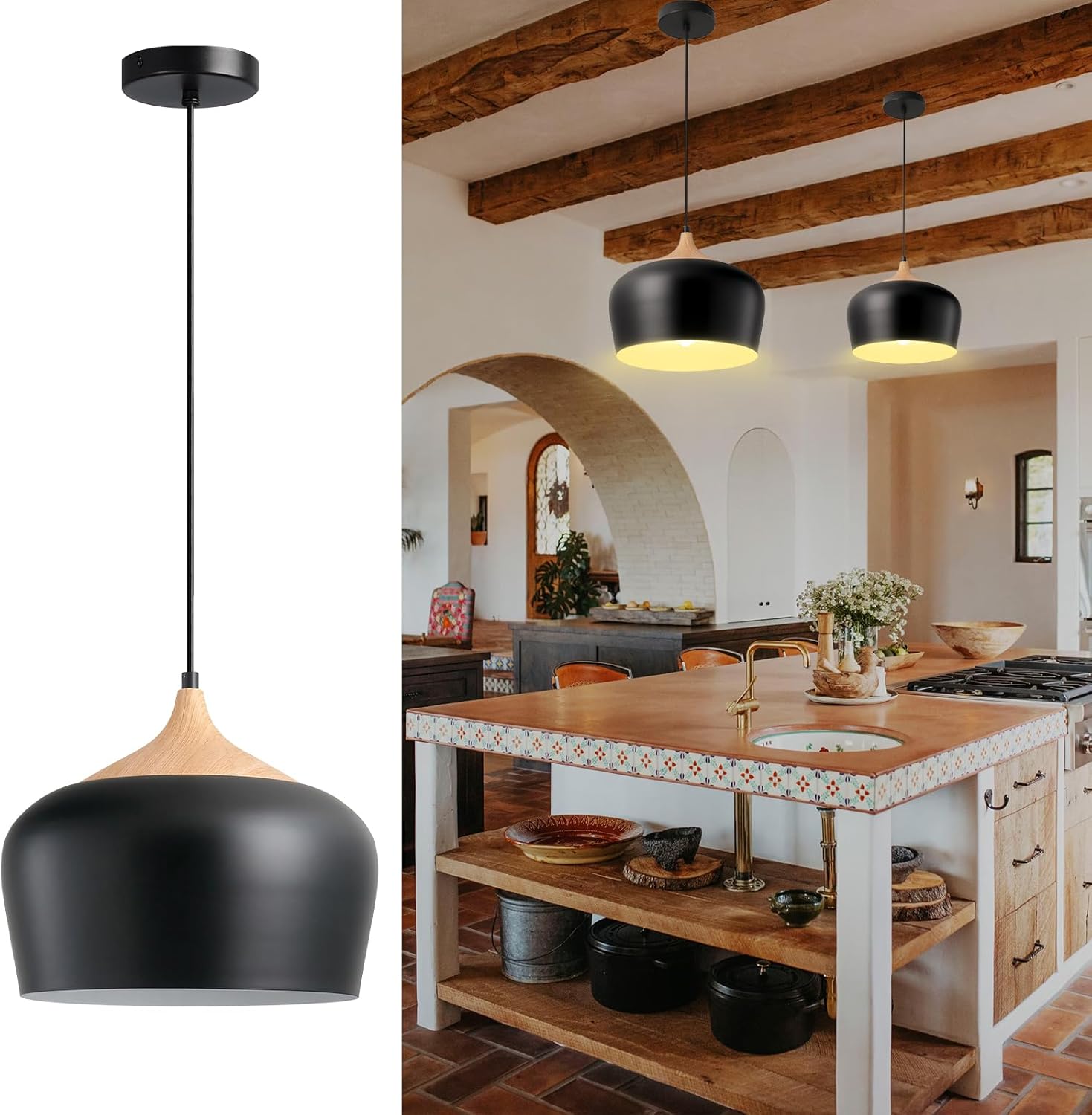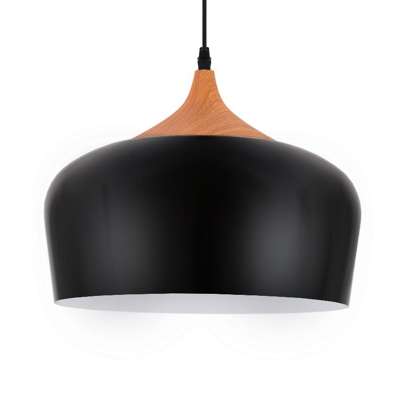 Ανανεώστε τον χώρο σας με το κρεμαστό φωτιστικό Nordic Black Wood. Ο μοντέρνος σχεδιασμός του με μεταλλικό μαύρο καπέλο και λεπτομέρειες από φυσικό ξύλο το καθιστούν ιδανικό για σαλόνια, τραπεζαρίες ή κουζίνες. Η καμπάνα του διαχέει ομοιόμορφα το φως, ενώ το καλώδιο ρυθμίζεται στο επιθυμητό ύψος. Εύκολη εγκατάσταση και ανθεκτικά υλικά για μακροχρόνια χρήση.