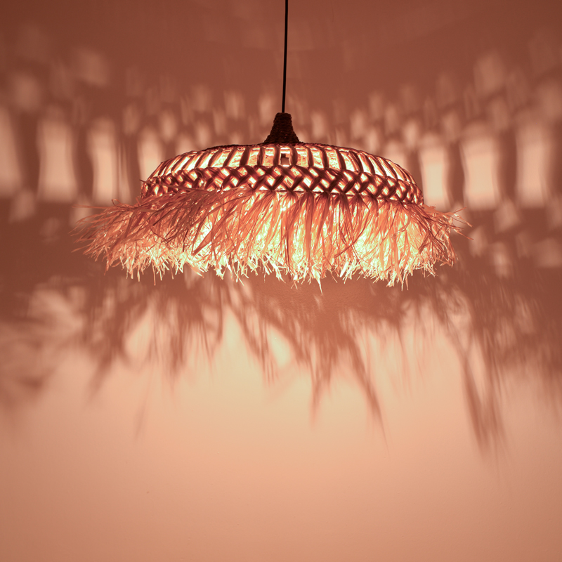 - Sisal: Το sisal, που προέρχεται από τα φύλλα του φυτού Agave sisalana και αποτελεί μια φυσική ίνα που βρίσκει εφαρμογή σε διάφορες κατασκευές, συμπεριλαμβανομένων και των φωτιστικών. Φημίζεται για την ανθεκτικότητα και την αντοχή του στη φθορά, καθιστώντας το ιδανικό για μακροχρόνια χρήση. Χάρη στην ιδιότητά του να διαχέει το φως, δημιουργεί μια απαλή λάμψη.