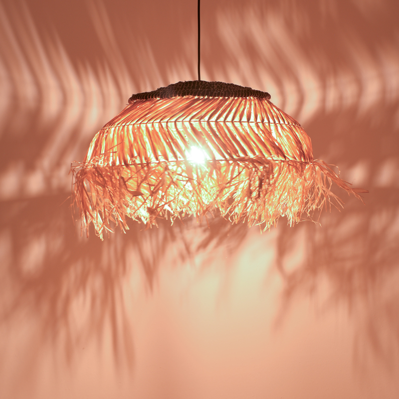- Sisal: Το sisal, που προέρχεται από τα φύλλα του φυτού Agave sisalanaκαι αποτελεί μια φυσική ίνα που βρίσκει εφαρμογή σε διάφορες κατασκευές, συμπεριλαμβανομένων και των φωτιστικών. Φημίζεται για την ανθεκτικότητα και την αντοχή του στη φθορά, καθιστώντας το ιδανικό για μακροχρόνια χρήση. Χάρη στην ιδιότητά του να διαχέει το φως, δημιουργεί μια απαλή λάμψη.