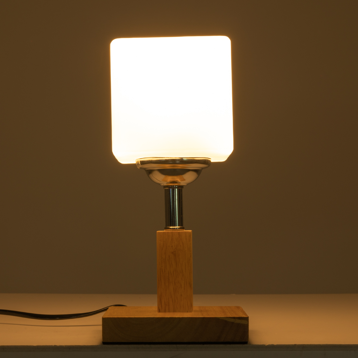 GloboStar® COVE 02037 Μοντέρνο Επιτραπέζιο Φωτιστικό Πορτατίφ Μονόφωτο 1 x E27 IP20 Μπεζ Ξύλο, Ασημί Μέταλλο με Λευκό Γυαλί - Μ12 x Π12 x Υ25cm