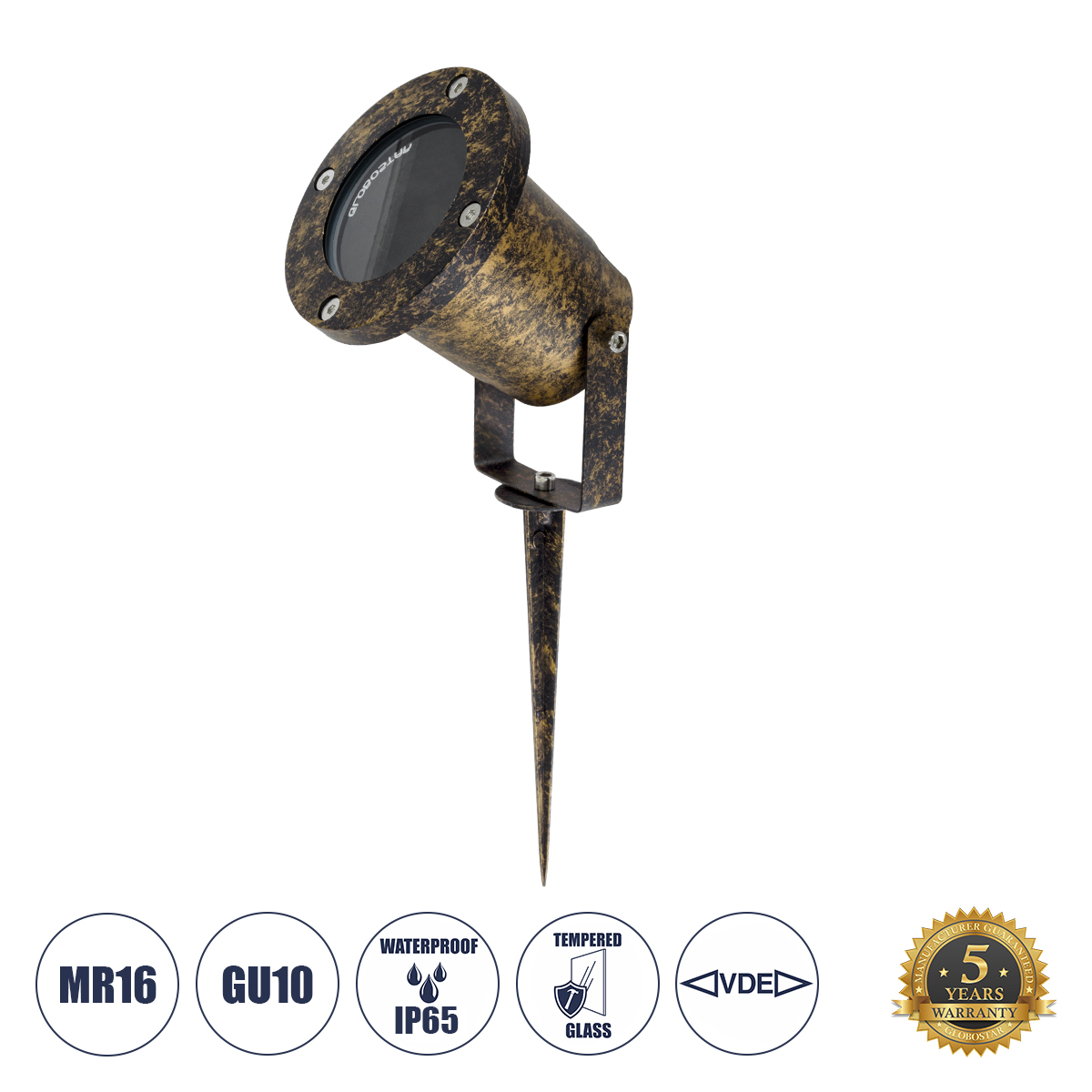 GloboStar® GARDELINI 61485 Καρφωτό Κινούμενο Φωτιστικό Σποτ Κήπου με Ντουί 1 x GU10 VDE Certified AC 220-240V Αδιάβροχο IP65 - Σώμα Αλουμινίου & Υψηλής Αντοχής Tempered Glass & Μ40cm VDE Καλώδιο Σύνδεσης - Φ10 x Υ30cm - Χρυσό Εφέ Σκουριάς - 5 Χρόνια Εγγύη
