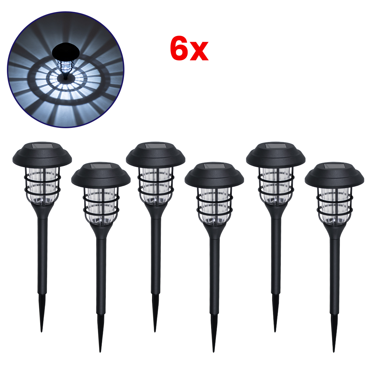 GloboStar® 85705 ΣΕΤ 6 Τεμαχίων Αυτόνομα Ηλιακά Φωτιστικά LED SMD 1W 100lm με Ενσωματωμένη Μπαταρία 250mAh - Φωτοβολταϊκό Πάνελ με Αισθητήρα Ημέρας-Νύχτας Αδιάβροχο IP65 Φανάρι Κήπου Στρογγυλό Ψυχρό Λευκό 6000K