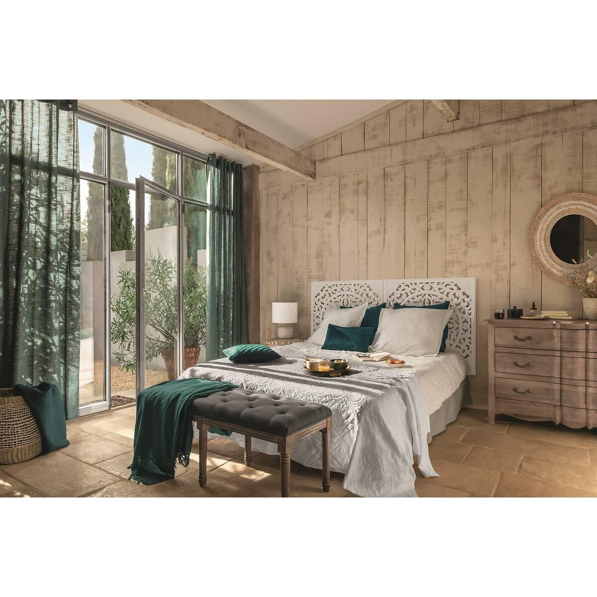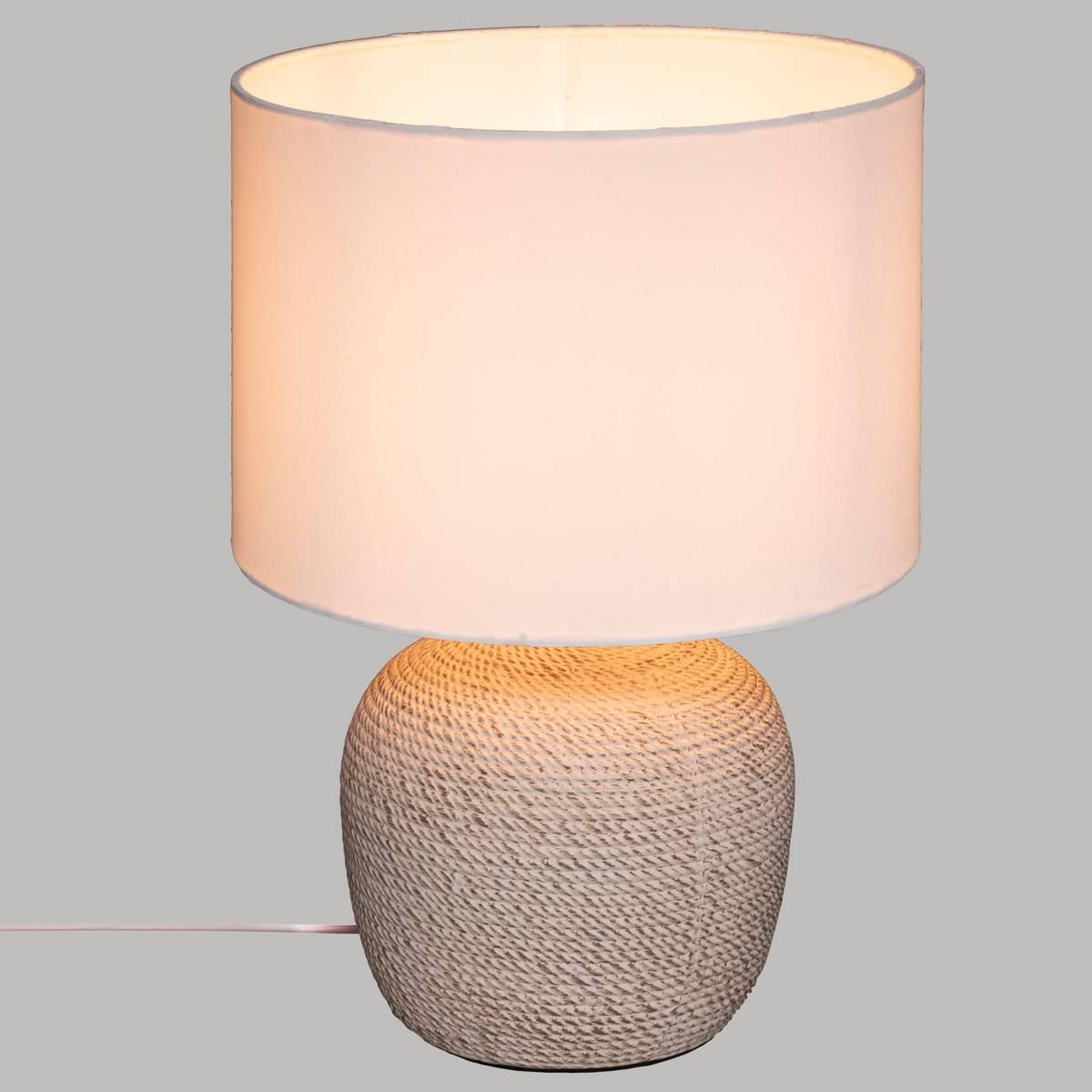 Atmosphera Επιτραπέζιο Φωτιστικό Εκρού με Ανάγλυφο Σχέδιο και Λευκό Υφασμάτινο Καπέλο Φ27εκ.x19.5εκ. 178946