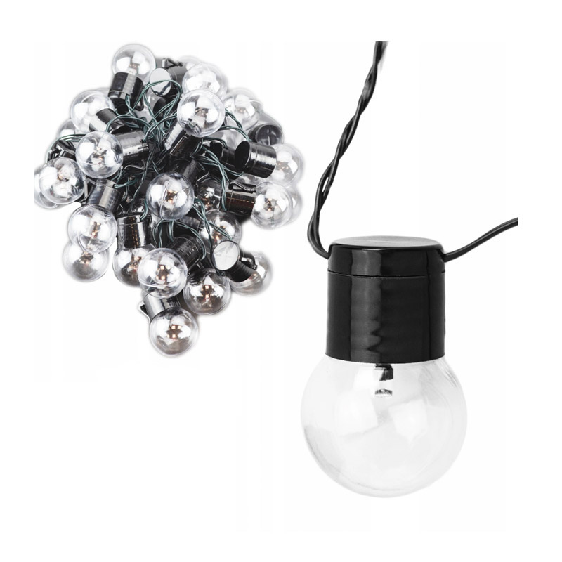 Η γιρλάντα, από την εταιρία SPM, είναι κατάλληλη για κήπους, φυτά, βεράντες και μπαλκόνια. Έχει μήκος 2 μέτρα και διαθέτει 10 λαμπτήρες G40 με φωτισμό χρώματος λευκό.