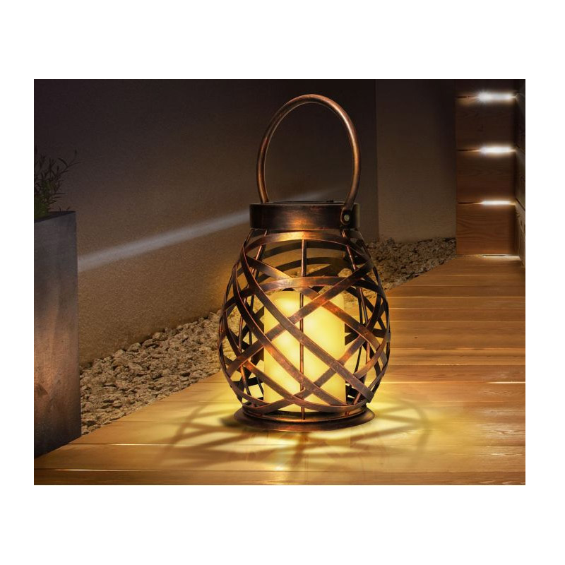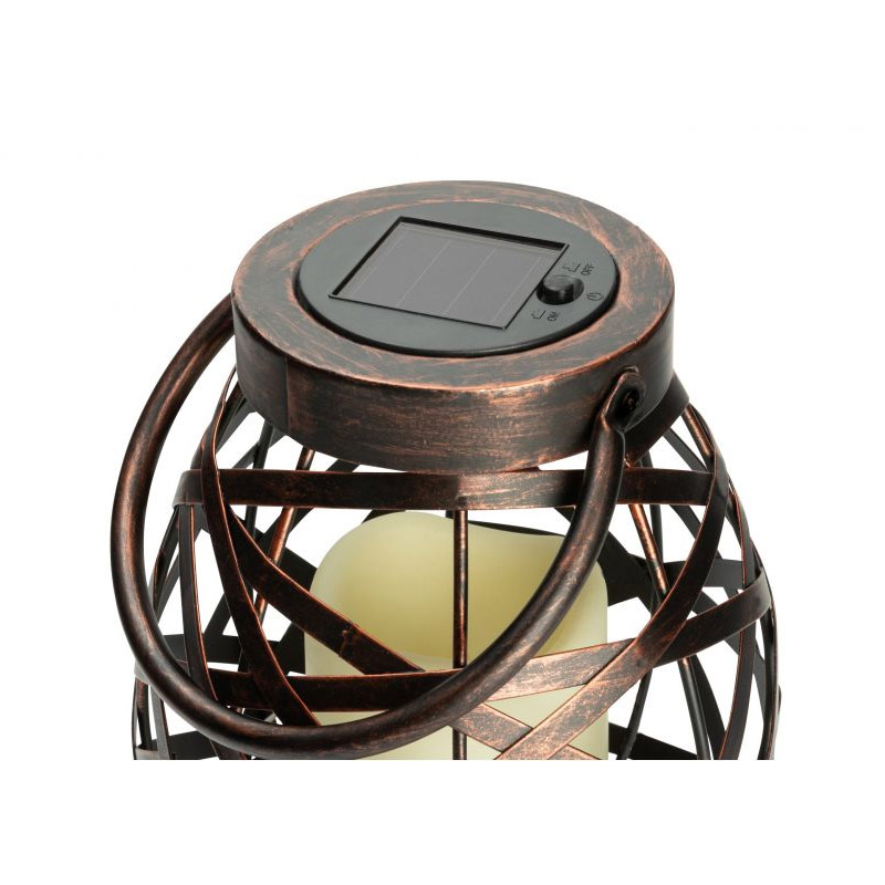 Το φανάρι, από την εταιρία Inkazen, διαθέτει μεταλλική κατασκευή και στο εσωτερικό του έχει κερί με LED ζεστό λευκό φωτισμό, το οποίο τροφοδοτείται από ηλιακό πάνελ, χωρίς καλώδια.
