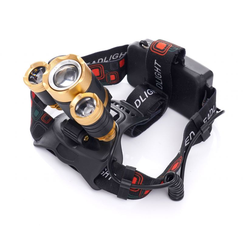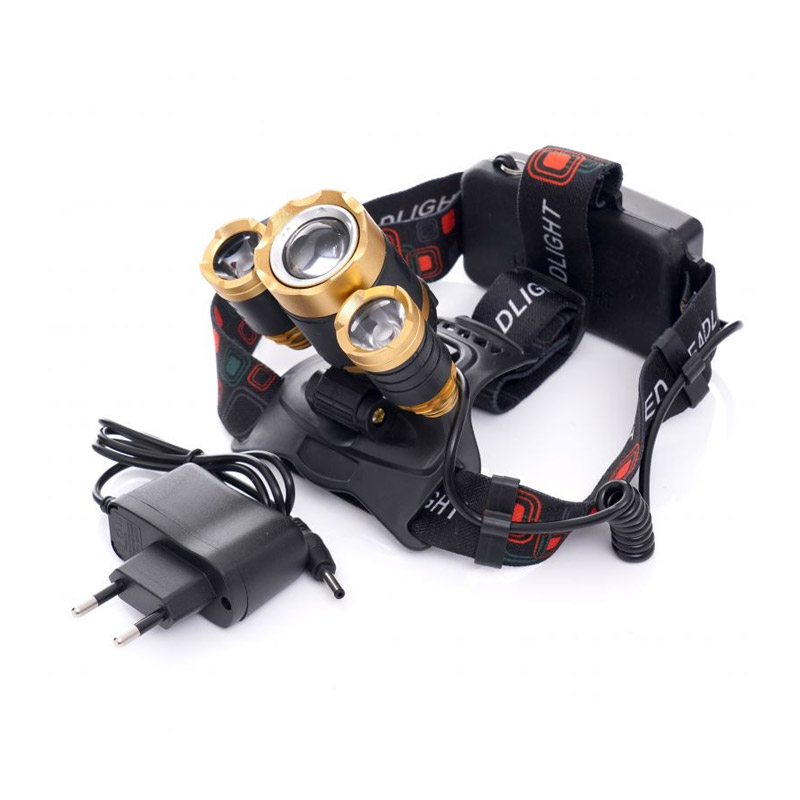 Τριπλός Επαναφορτιζόμενος Φακός Κεφαλής LED T6 Kraft&Dele KD-1246