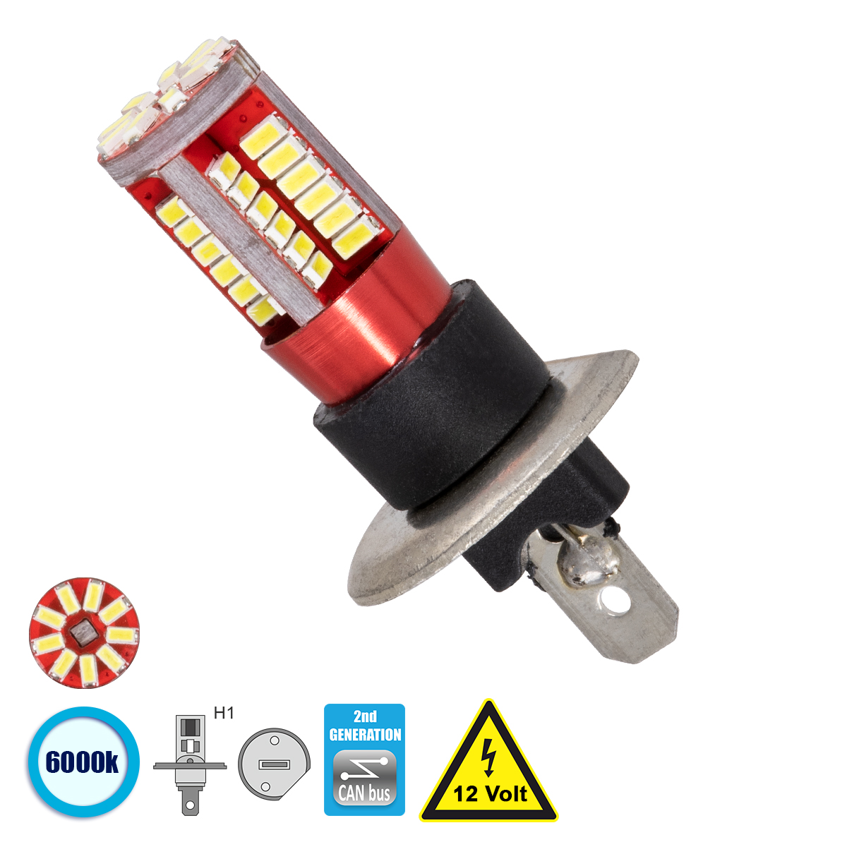 Ο Λαμπτήρας LED H1 Can Bus με 57 SMD 4014 6000k αντικαθιστά τον φωτισμό με βάση H1 για το αυτοκίνητό σας η την μοτοσυκλέτα σας.