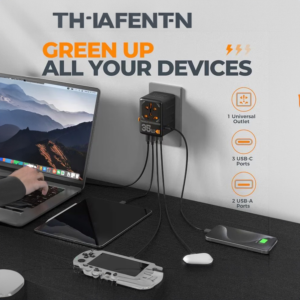 Ο TESSAN TS-WTA-02 είναι ο απαραίτητος αντάπτορας ταξιδιού που θα κάνει τη ζωή σου πιο απλή και τα ταξίδια σου πιο άνετα. Με 2 θύρες USB-A και 3 θύρες USB-C, προσφέρει ευέλικτη και γρήγορη φόρτιση για όλες τις συσκευές σου, από smartphone και tablet μέχρι laptop, χωρίς να χρειάζεται να κουβαλάς πολλούς φορτιστές.