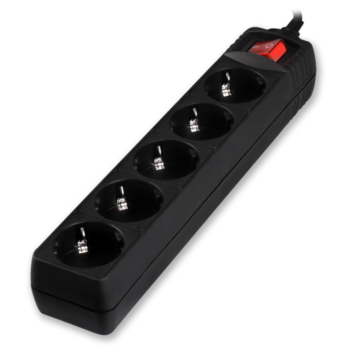 LAMTECH POWER STRIP WITH SWITCH 5 OUTLETS BLACK 1.5M