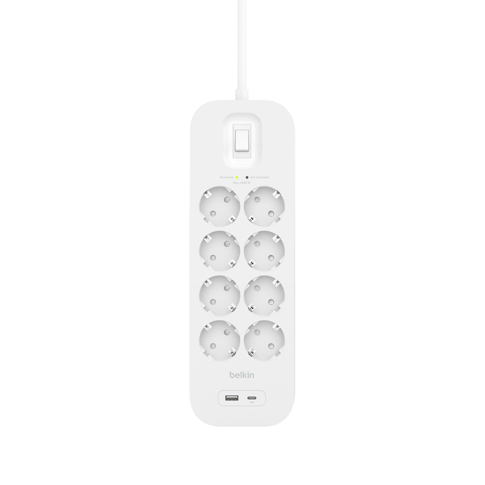 Πολύμπριζο με προστασία από υπερτάσεις με θύρες USB (8 πρίζες, μία θύρα USB-C και μία USB-A)