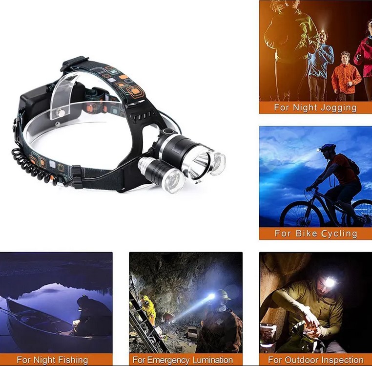 Explorer Beam - Φακός Κεφαλής Τρίφωτος LED Επαναφορτιζόμενος Μαύρος Πλαστικό - Μεταλλικό Ρυθμιζόμενος με 2 x 18650 Μπαταρίες - Ψυχρό Λευκό 6000K