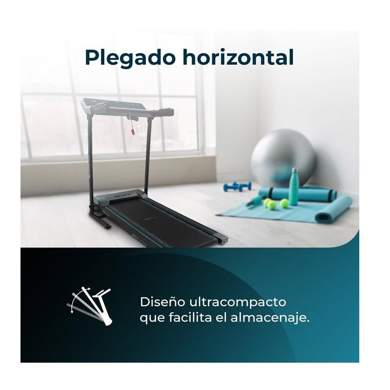 Ο διάδρομος, έχει οθόνη LED μέσω της οποίας μπορείτε να ελέγχετε την ταχύτητα, το χρόνο, την απόσταση που διανύθηκε και τις θερμίδες. Εξοπλισμένος με θήκη για μπουκάλι, θήκη συσκευής, όργανο ελέγχου καρδιακών παλμών, μαγνητικό σύστημα πέδησης και τροχούς μεταφοράς.