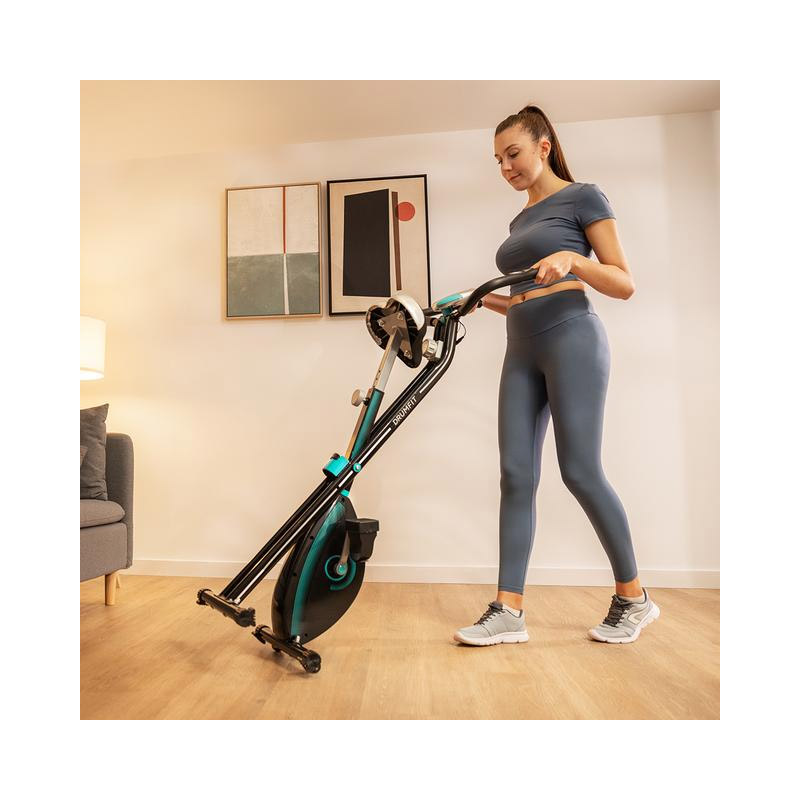 Το ποδήλατο γυμναστικής, από την εταιρία Cecotec, διαθέτει σύστημα αναδίπλωσης για την αποθήκευσή του σε ελάχιστο χώρο. Με μεταβλητή μαγνητική αντίσταση 8 επιπέδων, άνετη σέλα και πλευρικές λαβές και οθόνη LCD που δείχνει χρόνο, ταχύτητα, θερμίδες που καταναλώθηκαν, απόσταση που διανύθηκε και καρδιακούς παλμούς. Εύκολη μετακίνηση χάρη στους τροχούς και σύστημα Silence Fit με ευέλικτο και αθόρυβο πετάλι.