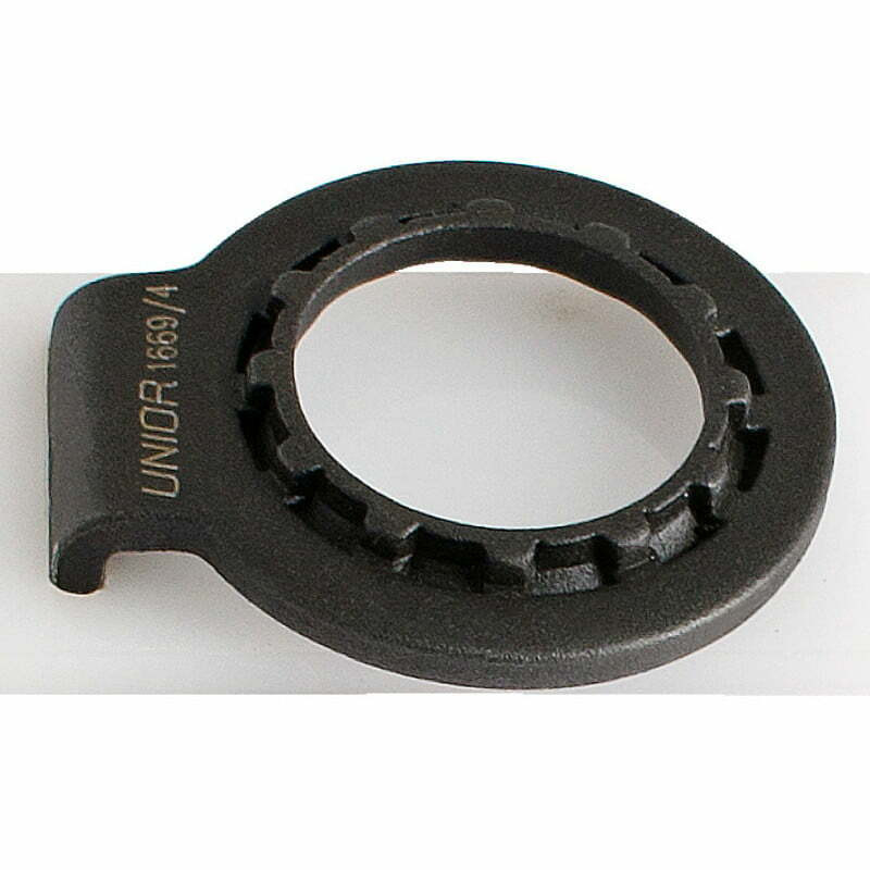 2 σε 1 ακτινολόγος και εξολκέας κασέτας κατασκευασμένος από υψηλής ποιότητας ανθρακούχο χάλυβα. Με μαύρο φινίρισμα επιφάνειας σύμφωνα με το πρότυπο DIN 50938. Ένα βασικό εργαλείο για μεγάλα ποδηλατικά tour. Χρήση: Για την αλλαγή σπασμένων ακτιμών στην δεξιά πλευρά του πίσω τροχού πρέπει πρώτα να αφαιρεθεί η κασέτα. Πρώτα αφαιρέστε τον πίσω τροχό και μετά εφαρμόστε το εργαλείο στο παξιμάδι της κασέτας Τοποθετήστε τον τροχό πίσω στην θέση του, έτσι ώστε το τετράγωνο άκρο του εργαλείου να πιέζει στο πλαίσιο ή την κρεμάστρα του ντεραγιέρ. Μετά από αυτό, πιέστε τα πεντάλ εμπρός για να λύσει το παξιμάδι της κασέτας. Για να αποφευχθεί η πιθανότητα να καταστραφεί η βαφή στο πλαίσιο του ποδηλάτου, τοποθετήστε μια προστατευτική πλαστική πλάκα μεταξύ του κλειδιού και του πλαισίου. Αφαιρέστε την κασέτα και επανατοποθετήστε τη σπασμένη ακτίνα. Μπορείτε να δείτε την διαδικασία και στο video που βρίσκεται στην βιβλιοθήκη του προϊόντος.