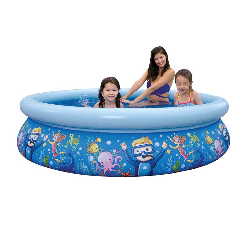 Η πισίνα διαθέτει εξαιρετικά ευρύχωρα πλευρικά τοιχώματα κατασκευασμένα από ανθεκτικό PVC, αποτρέποντας την απώλεια νερού κατά την αναρρίχηση μέσα και έξω από την πισίνα. Φουσκώνεται και ξεφουσκώνεται γρήγορα και αποθηκεύεται εύκολα μετά τη χρήση. Διαθέτει χαρούμενη διακόσμηση στο εξωτερικό της.