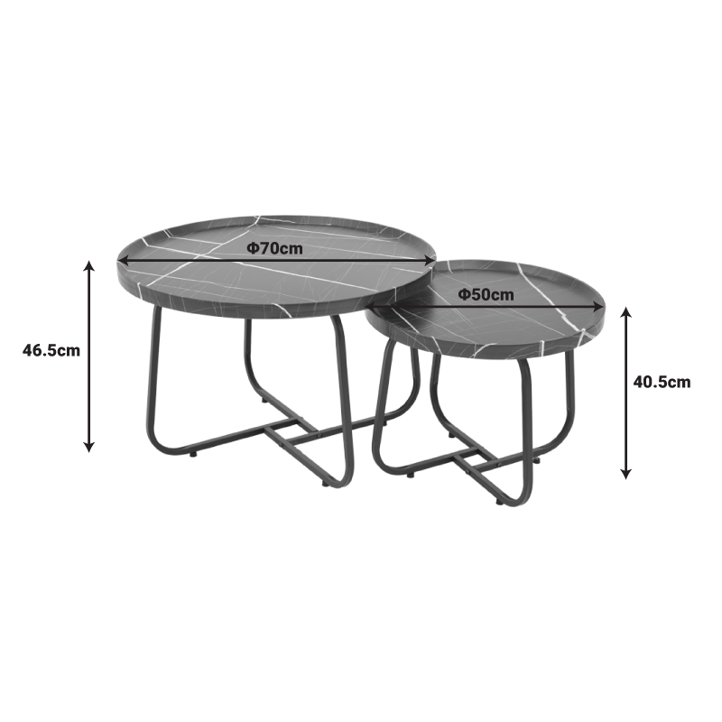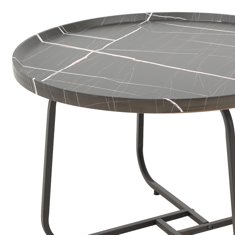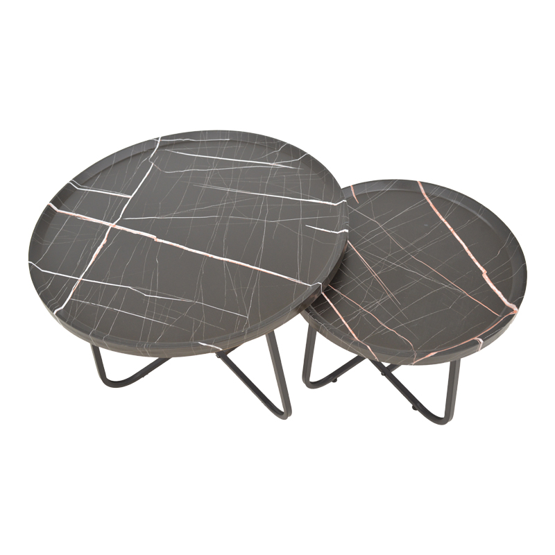 Tραπέζια σαλονιού Crismory pakoworld σετ 2τεμ MDF σε απόχρωση μαύρο μαρμάρου και μαύρα μεταλλικά πόδια