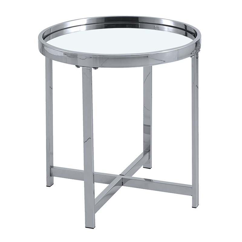 Βοηθητικό τραπέζι σαλονιού Tristan pakoworld μέταλλο ασημί-γυαλί Φ55x55εκ