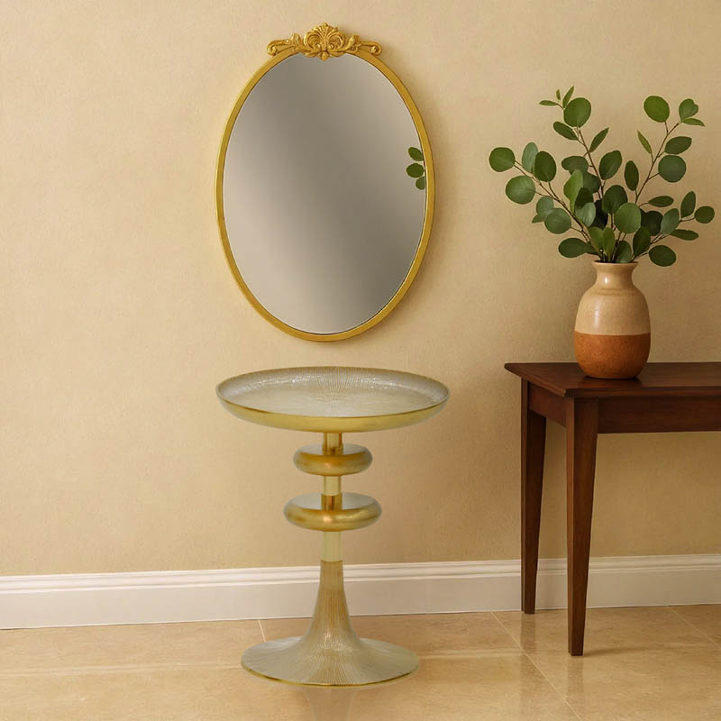 Βοηθητικό τραπέζι Trego I Inart χρυσό-λευκό μέταλλο Φ33x42εκ