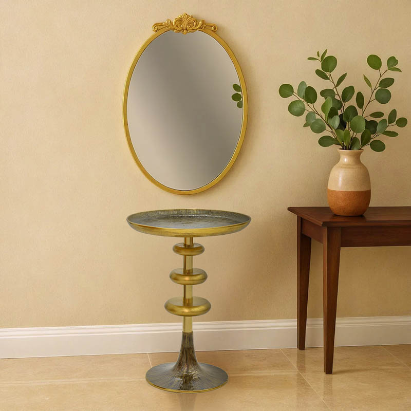Βοηθητικό τραπέζι Trego Inart χρυσό-μαύρο μέταλλο Φ39x55εκ