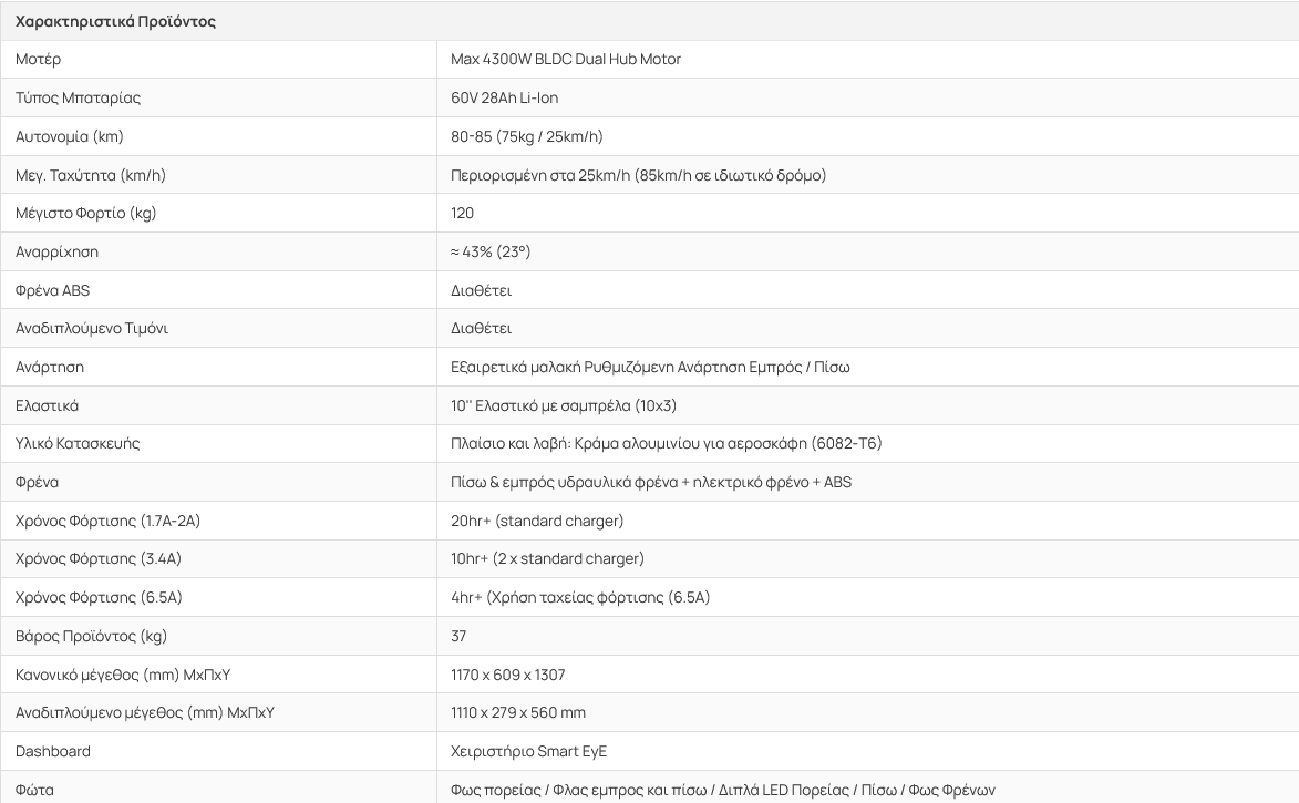 Το Victor Luxury Plus είναι εξοπλισμένο με δύο κινητήρες στο μπροστινό και στο πίσω μέρος που μπορούν να αποδώσουν μέγιστη ισχύ εξόδου 2150 W ο καθένας, για συνολικά 4300 W. Αρκετά για να ανέβετε σε οποιαδήποτε ανηφόρα που θα συναντήσετε.