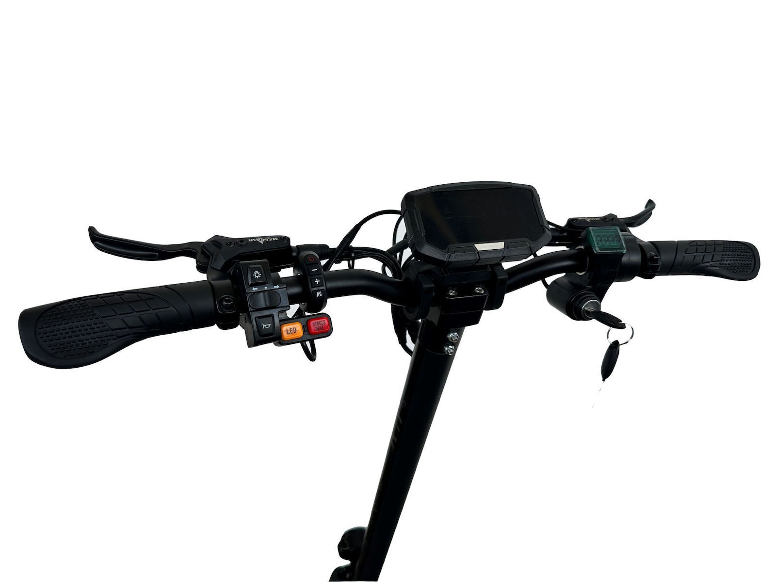Εξοπλισμένο με ψηφιακή οθόνη LED, κόρνα, διάσταση τροχού 11" για άνετη οδήγηση, LED RGB L/R, καθώς και LED φωτισμό στο πάτωμα του Scouter. Επίσης διαθέτει φώτα μπρος, πίσω και στοπ. Ο λαιμός του καθώς και το τιμόνι είναι ανακλινόμενα ενώ ενσωματώνει ανάρτηση και δισκόφρενα μπρος & πίσω. Το πατίνι έρχεται με κλειδί και δυνατότητα ρύθμισης ύψους τιμονιού.