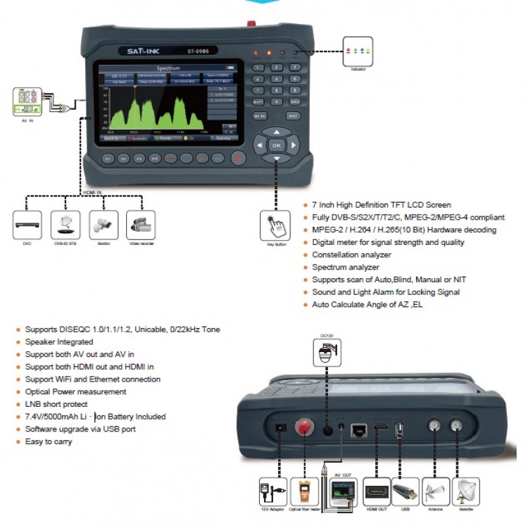 ● Υποστηρίζει DISEQC 1.0/1.1/1.2, Unicable, 0/22kHz Tone
