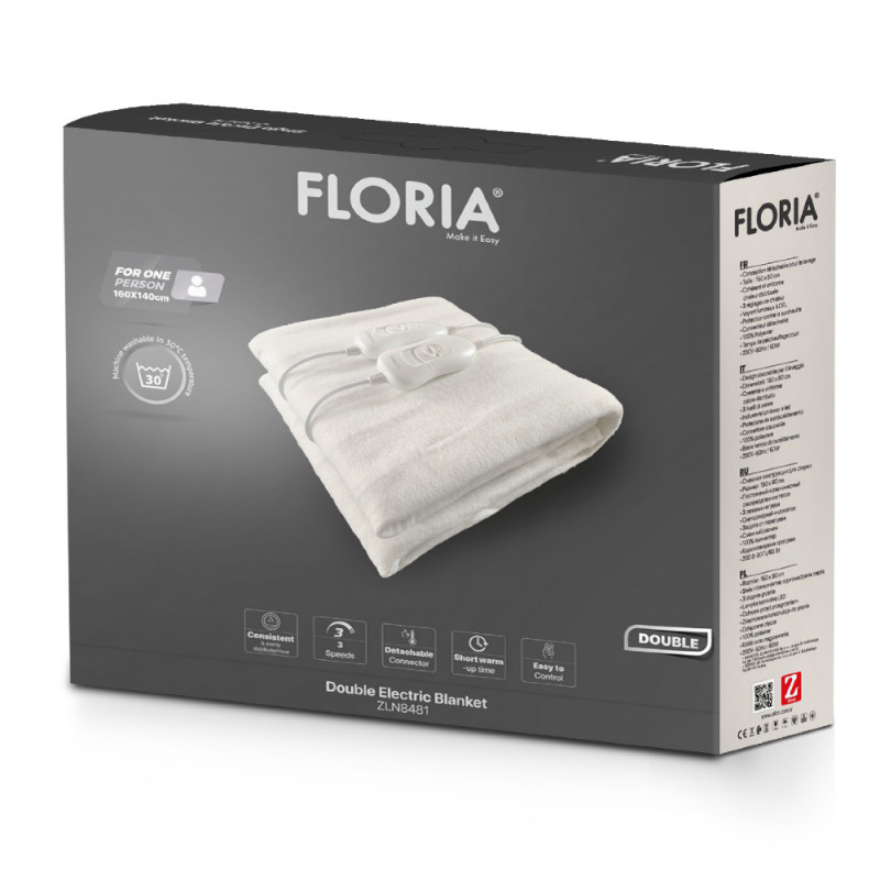 Διπλό Ηλεκτρικό Υπόστρωμα Πλενόμενο Λευκό 120W 160x140εκ. Zilan ZLN8481