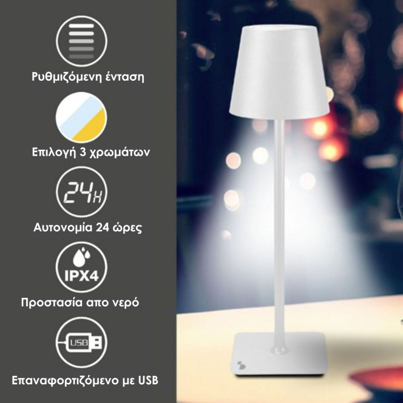 Επιτραπέζιο Επαναφορτιζόμενο Φωτιστικό led σε Λευκό Χρώμα Beper P201utp119