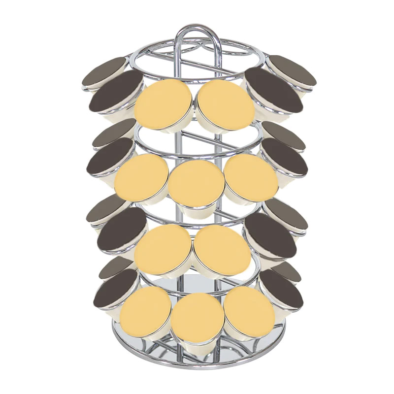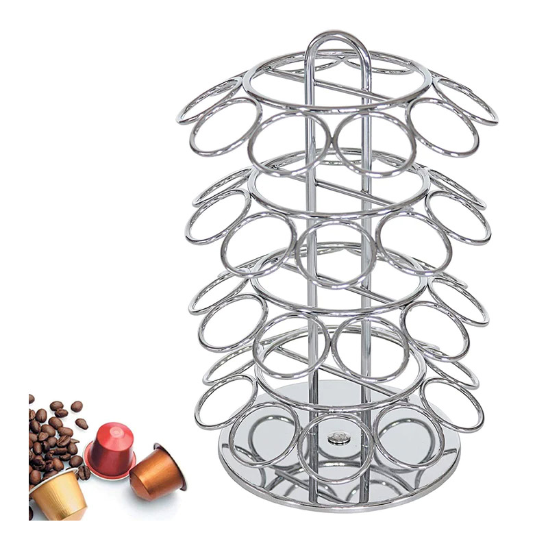 Η βάση, από την εταιρία Bakaji, διαθέτει μεταλλική κατασκευή, είναι περιστρεφόμενη και μπορείτε να αποθηκεύσετε έως 40 κάψουλες καφέ.