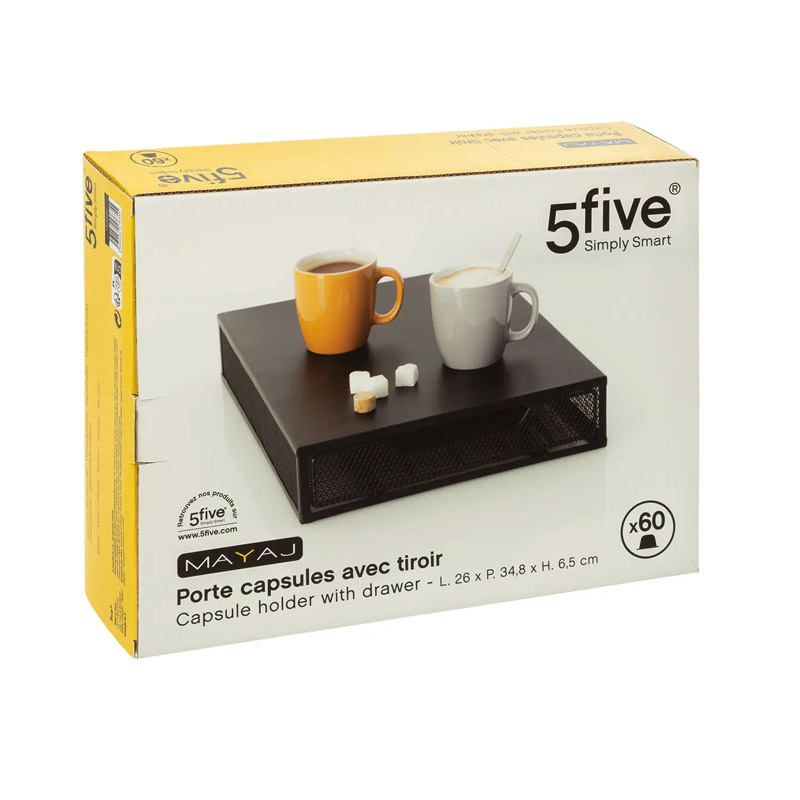 Το συρτάρι - διοργανωτής, από την εταιρία 5Five Simply Smart, είναι κατασκευασμένο από ατσάλι και έχετε τη δυνατότητα να αποθηκεύσετε έως 60 κάψουλες καφέ.