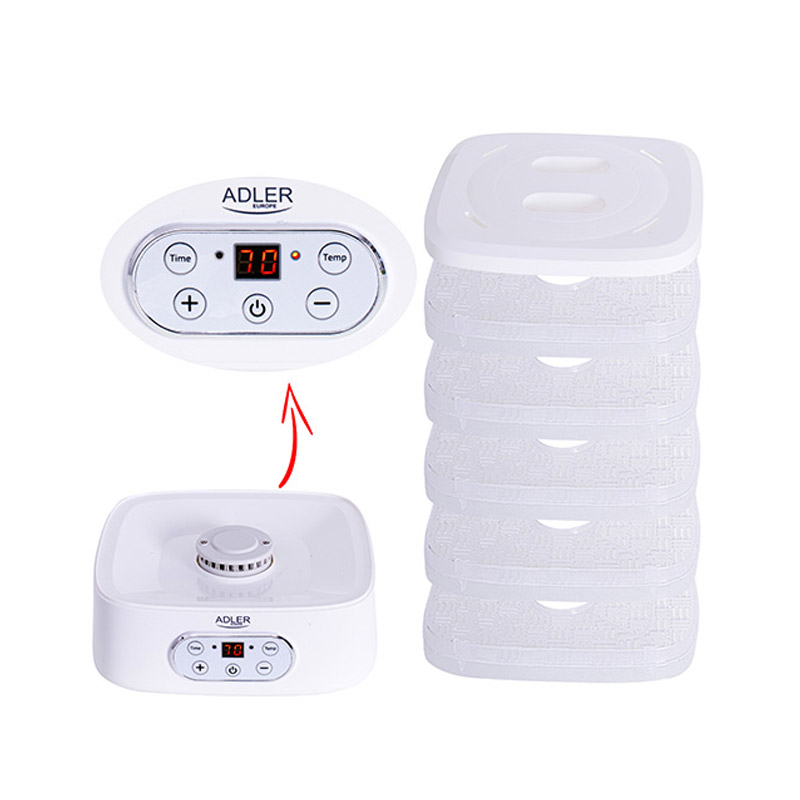 Ο αποξηραντής τροφίμων, από την εταιρία Adler, σας δίνει τη δυνατότητα να αποξηράνετε φρούτα, λαχανικά, βότανα, λουλούδια και μανιτάρια χωρίς την προσθήκη συντηρητικών και άλλων τεχνητών συστατικών. Είναι ένας αποτελεσματικός και εύκολος τρόπος για να διατηρήσετε τη γεύση, τα αρώματα και την αξία των τροφίμων.