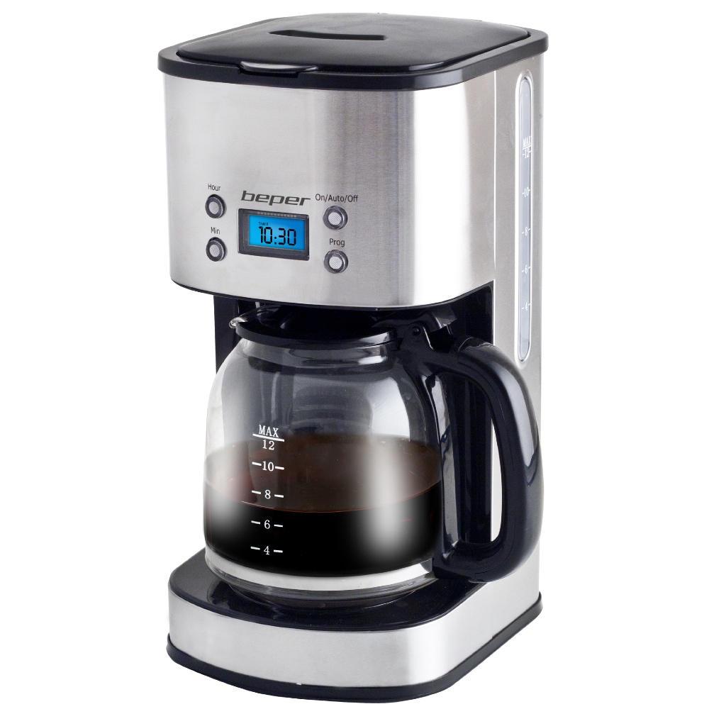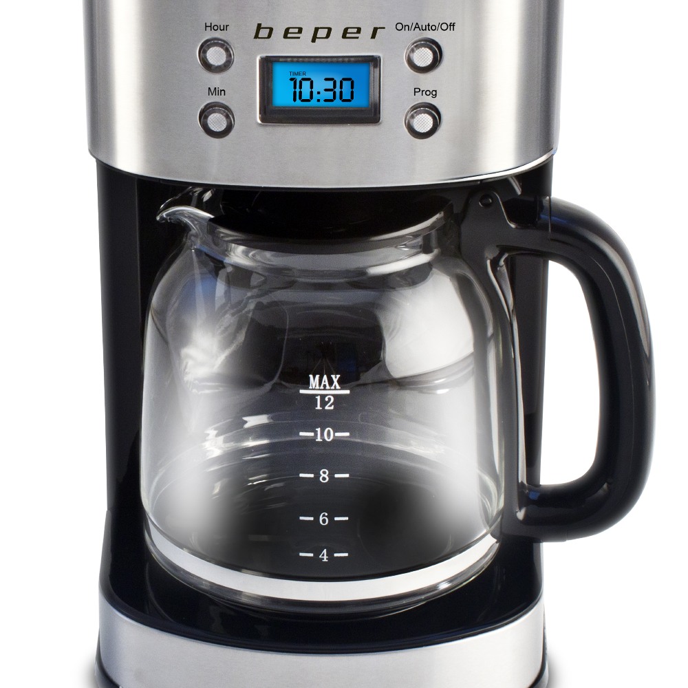 Mε την μοναδική ψηφιακή καφετιέρα φίλτρου από τη BEPER απολαύστε αρωματικό-γευστικό καφέ φίλτρου με τους φίλους ή τους συναδέλφους στη δουλειά, το μαγαζί ή το σπίτι ανά πάσα στιγμή. Με ψηφιακό χρονόμετρο, για να τη ρυθμίσεις ανάλογα με το πρόγραμμά σου, αλλά και δυνατότητα να γεμίσει έως και 14 κούπες καφέ.