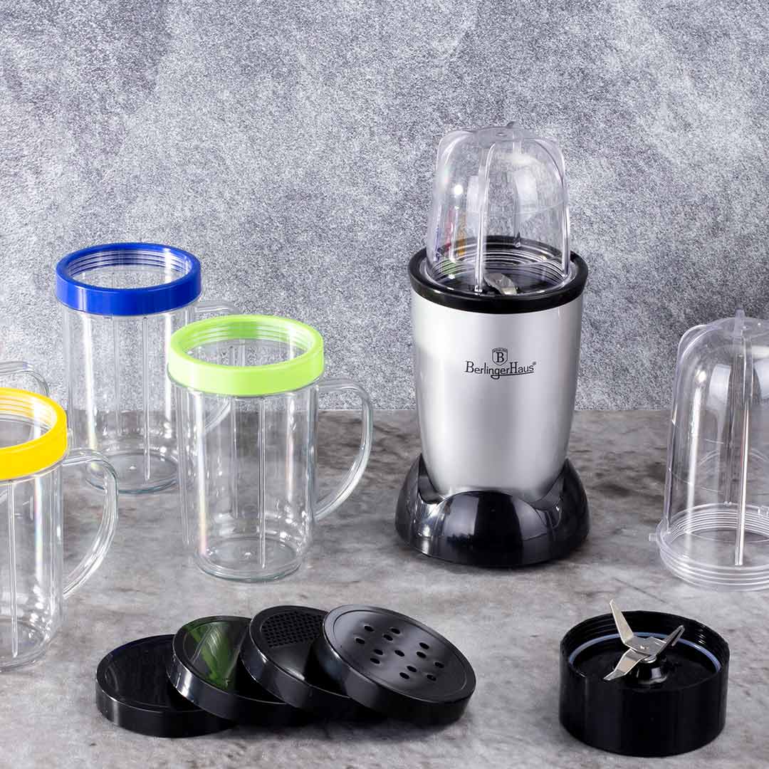 Μπλέντερ με 6 κανάτες και λεπίδες από ανοξείδωτο ατσάλι Metallic Black Silver Collection Berlinger Haus BH-9345_OR
