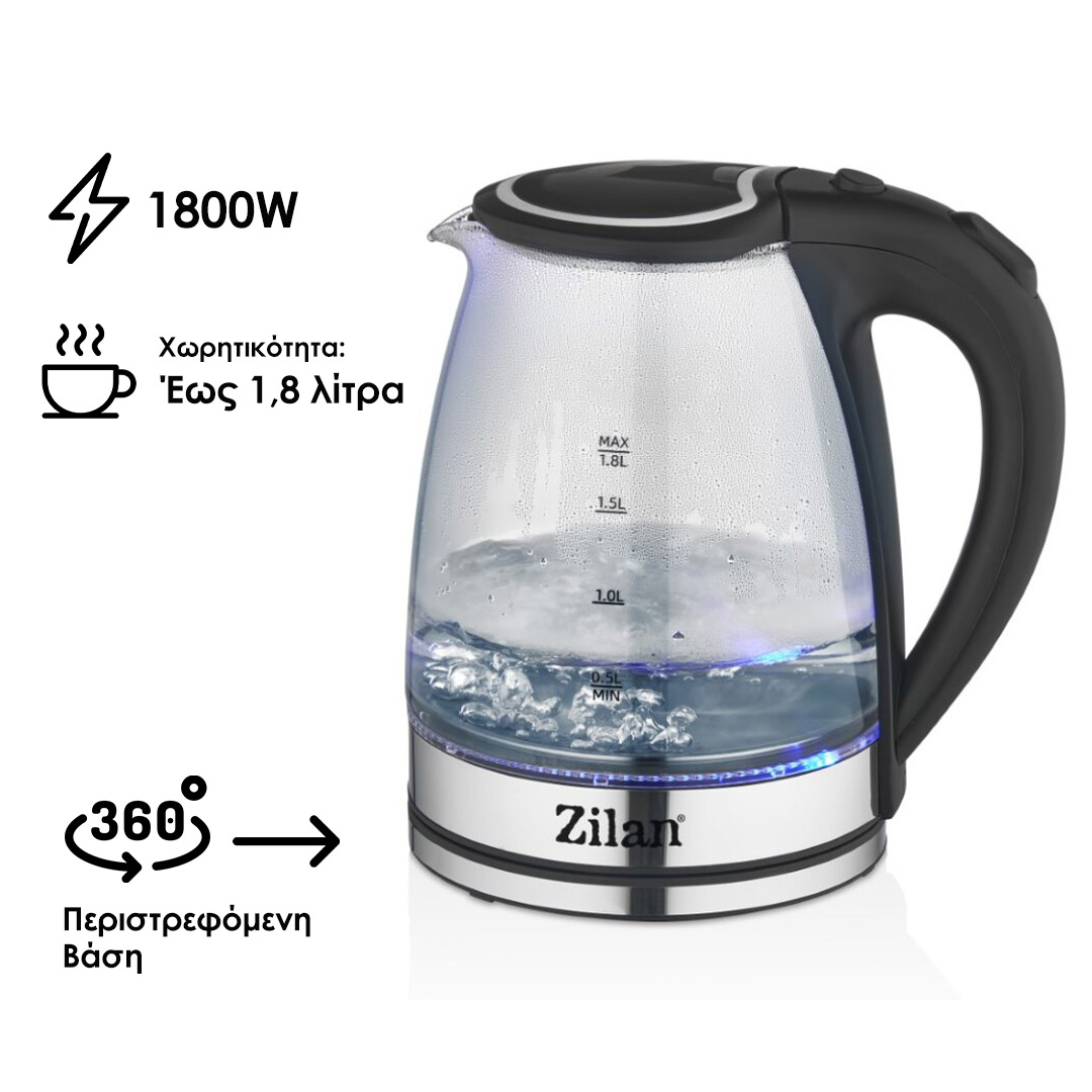Zilan Γυάλινος Βραστήρας Νερού 1.8l 1800w Zln8115
