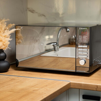 Φούρνος μικροκυμάτων με ισχύ 900 watt και χωρητικότητα 25 λίτρα για να μπορεί να καλύψει τις ανάγκες μιας μεγάλης οικογένειας (4 άτομα και άνω).