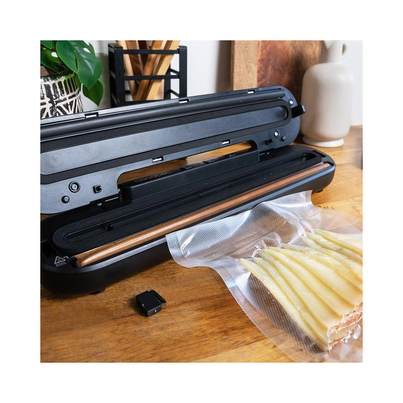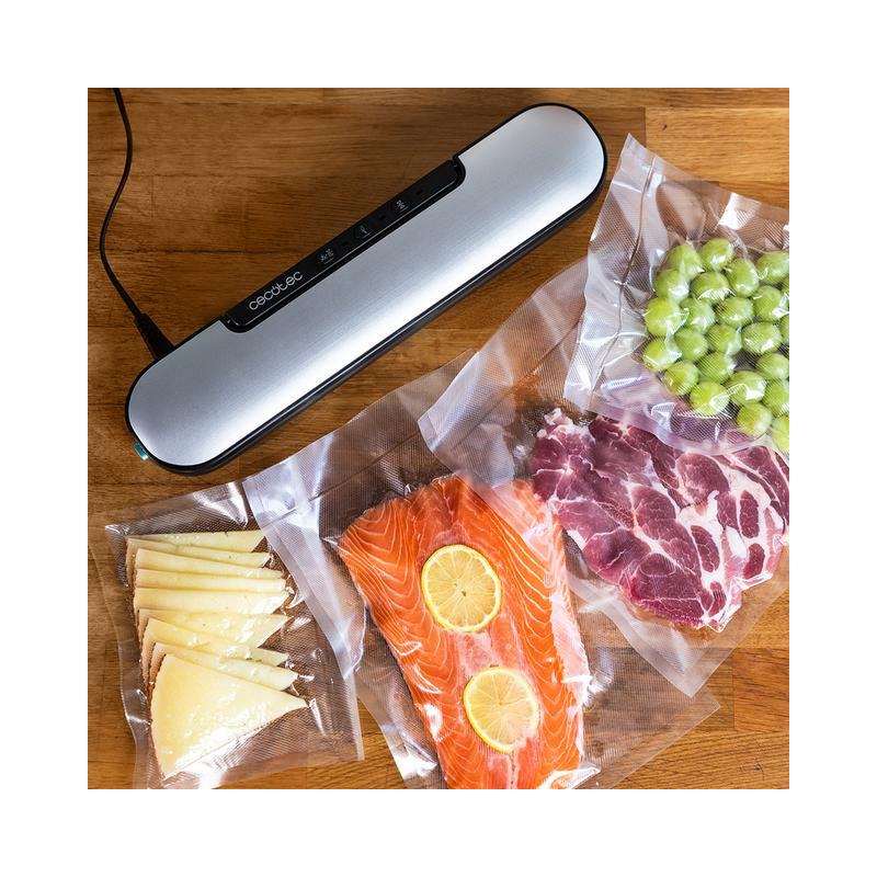 Η συσκευή σφραγίσματος τροφίμων, από την εταιρία Cecotec, διατηρεί όλα τα είδη τροφίμων για μεγαλύτερο χρονικό διάστημα με απλό τρόπο. Γρήγορο σύστημα συσκευασίας σε 10 δευτερόλεπτα και πλάτος σφράγισης 30 cm με ενσωματωμένο κόφτη. Διάφορες επιλέξιμες λειτουργίες στεγνού και υγρού που παρέχουν στα τρόφιμα την καλύτερη δυνατή συντήρηση με βάση τους διαφορετικούς τύπους τροφίμων σας.