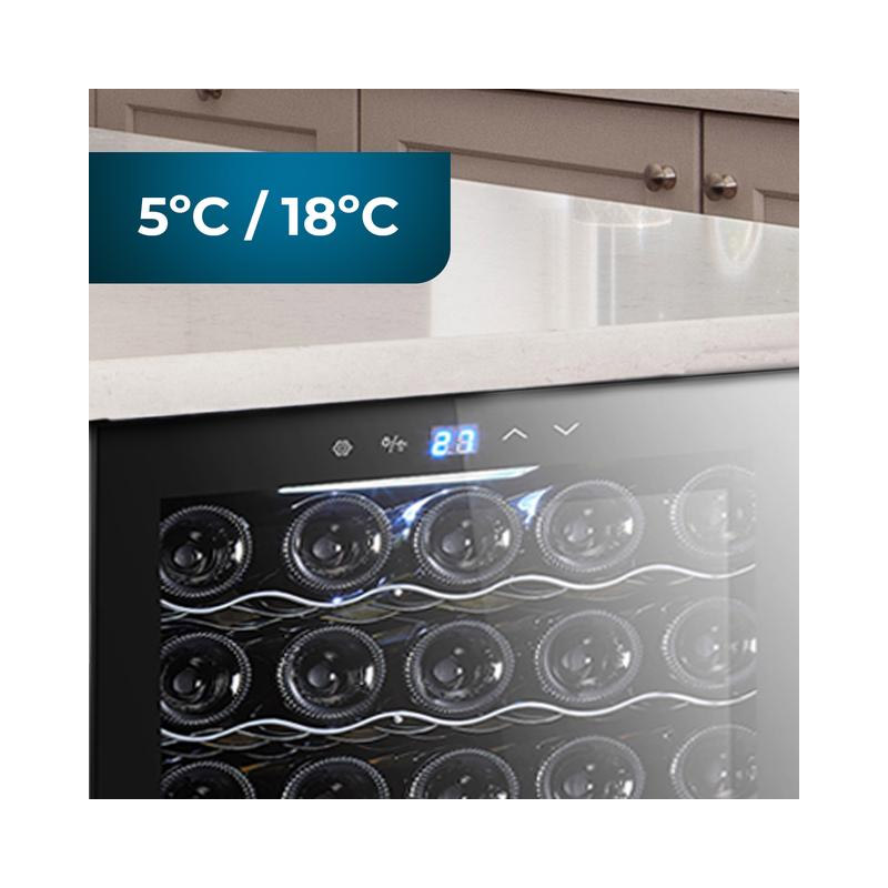 Ο συντηρητής, είναι εξοπλισμένος με πίνακα ελέγχου αφής, μέσα από τον οποίο μπορείτε να ρυθμίσετε τη θερμοκρασία (μεταξύ 5-18 °C), να ενεργοποιήσετε ή απενεργοποιήσετε το φως, ή να επιλέξετε την ένδειξη της θερμοκρασίας σε °F ή °C.