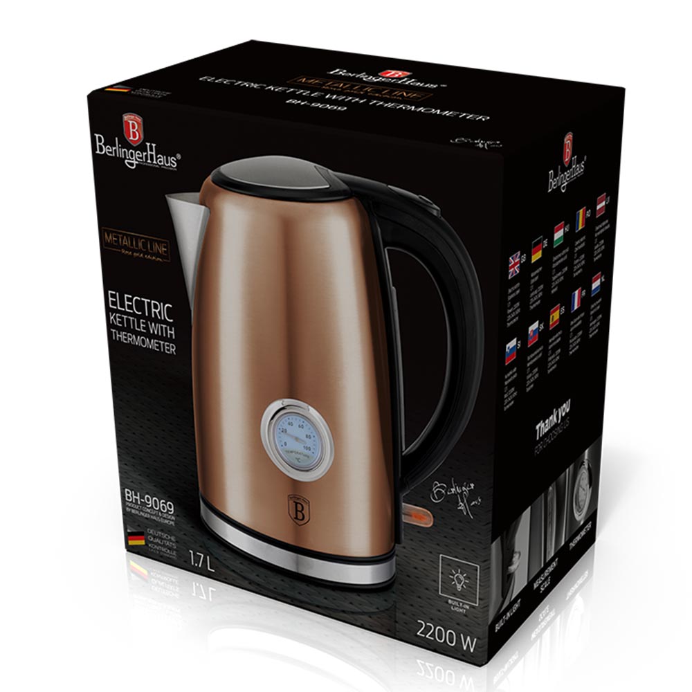 Ηλεκτρικός Βραστήρας από Ανοξείδωτο Ατσάλι 1.7lt με Ένδειξη Θερμοκρασίας 2200W Metallic Line Rose Gold Edition Berlinger Haus BH-9069