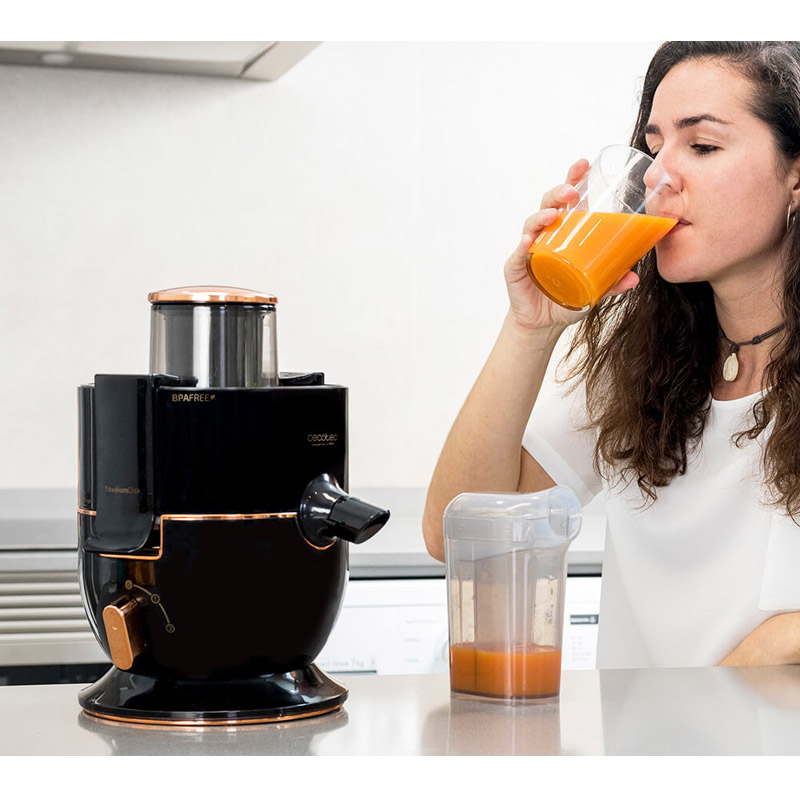 - Χάρη στον σχεδιασμό του και στην υψηλή ταχύτητα λειτουργίας του (19000 στροφές/λεπτό), διατηρεί 30% περισσότερες βιταμίνες στα φρούτα