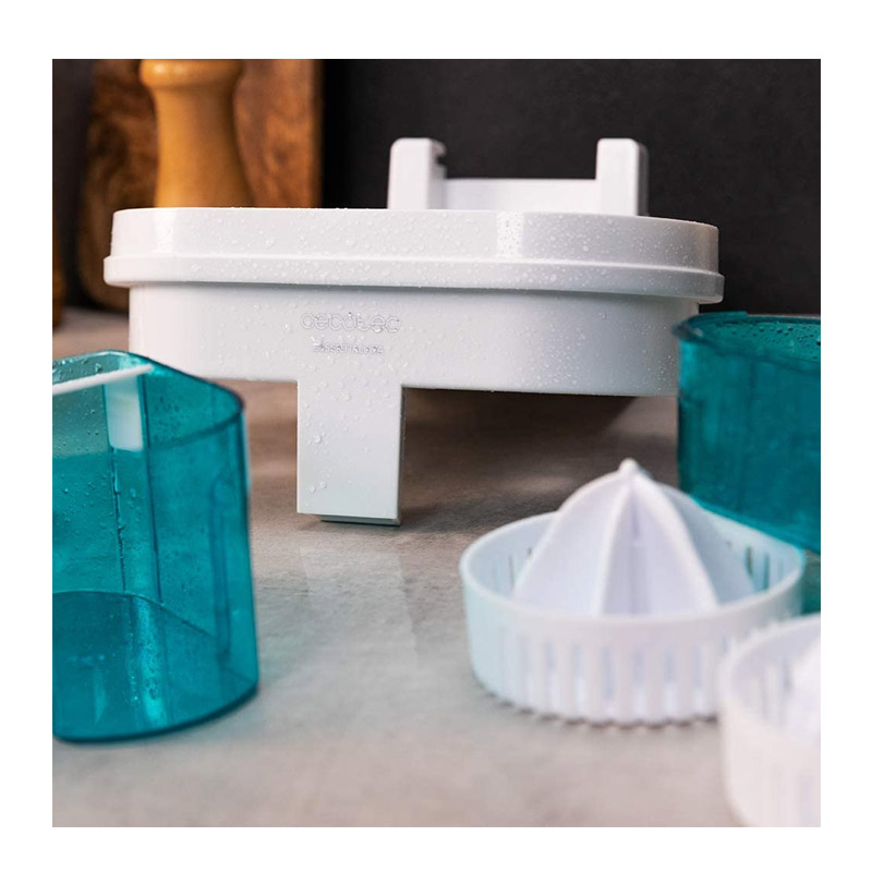 Έχει ένα πρακτικό δοχείο χυμού 500 ml και φίλτρο πολτού που μπορείτε εύκολα να αφαιρέσετε για καλύτερο καθαρισμό. Όλα τα μέρη του αποχυμωτή είναι αποσπώμενα και κατάλληλα για πλύσιμο σε πλυντήριο πιάτων. Επίσης διαθέτει χώρο στη βάση του μηχανήματος, ώστε το καλώδιο να μαζευτεί και να μην ενοχλεί κατά την αποθήκευσή του και βεντούζες για μεγαλύτερη σταθερότητα κατά την χρήση.