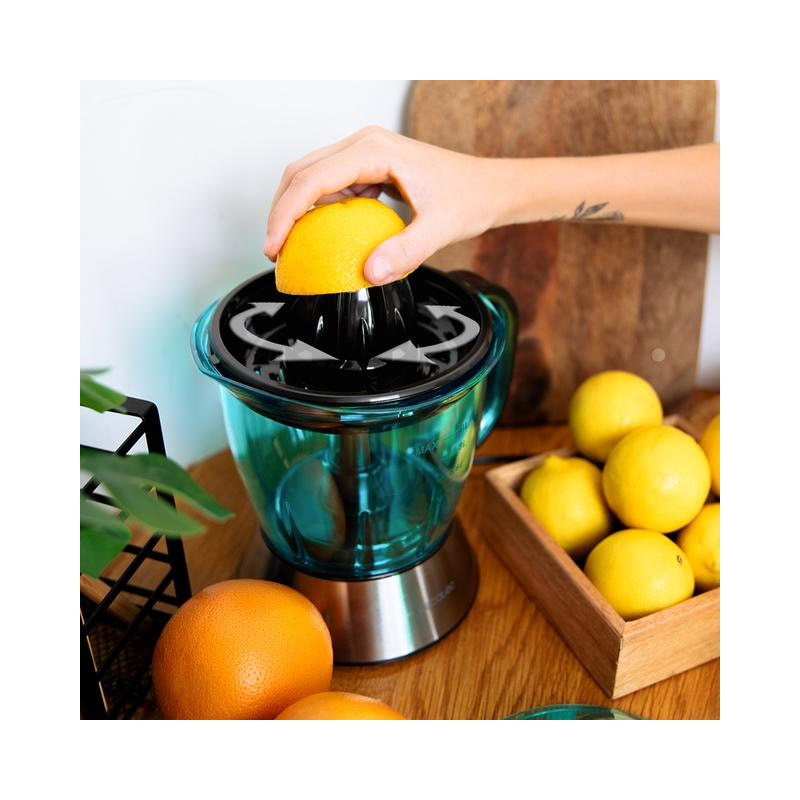 Ο ηλεκτρικός στίφτης, από την εταιρία Cecotec, διαθέτει ισχύ 40 W και είναι εξοπλισμένος με 2 αποσπώμενους κώνους για να τους χρησιμοποιήσετε με βάση το μέγεθος των εσπεριδοειδών σας. Πατώντας απλά τον κώνο, ο στίφτης θα αρχίσει να λειτουργεί αυτόματα. Η κανάτα είναι βαθμονομημένη σε ml και έχει χωρητικότητα 1 Lt. Χάρη στη διπλή φορά περιστροφής του θα μπορείτε να αξιοποιήσετε στο έπακρο τον χυμό από τα πορτοκάλια σας.
