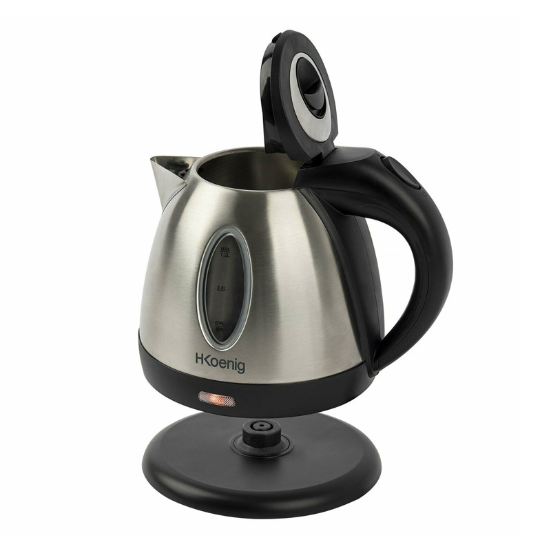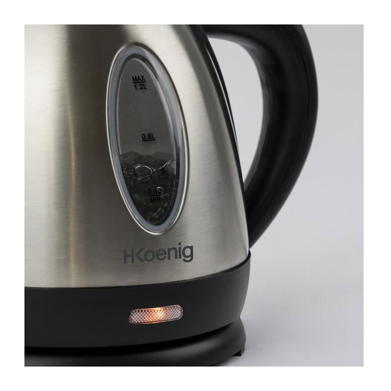Ο ασύρματος ηλεκτρικός βραστήρας, από την εταιρία H.Koenig, έχει χωρητικότητα 1.2 Lt και ισχύ 1630 W. Διαθέτει σώμα από ανοξείδωτο ατσάλι, ένδειξη στάθμης νερού, μη θερμαινόμενη λαβή, αυτόματη απενεργοποίηση, ενδεικτική λυχνία ON/OFF και χώρο για την αποθήκευση του καλωδίου κάτω από τη βάση.