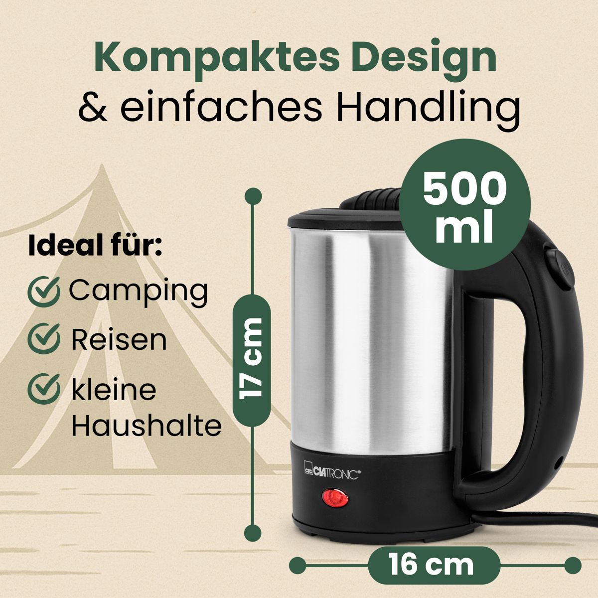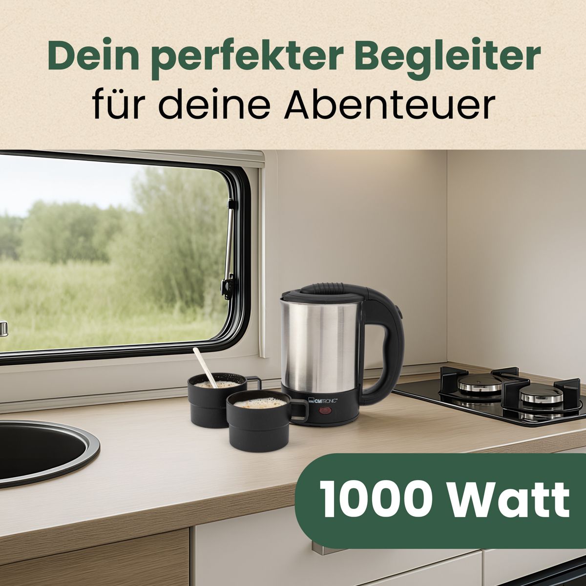 Βραστήρας Ταξιδίου από Ανοξείδωτο Ατσάλι 0.5L 1000 W- Μαύρο/Ασημί WKR3624 Clatronic
