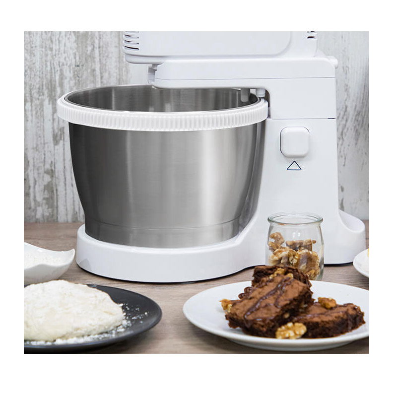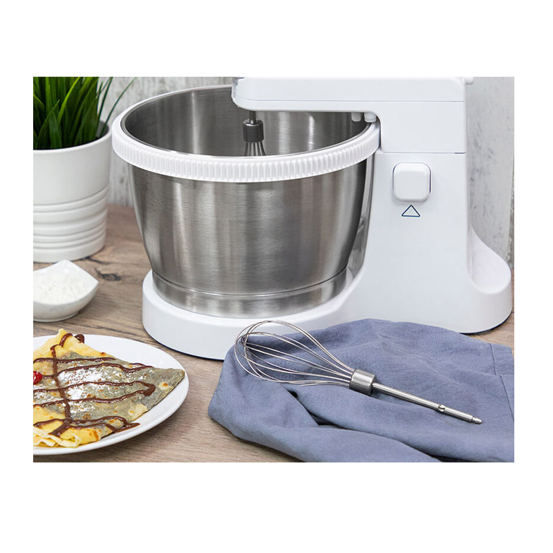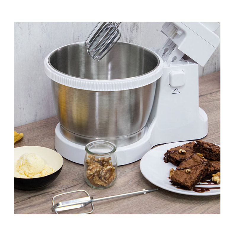 Το μίξερ, έχει 5 επίπεδα ταχύτητας, λειτουργία Turbo, καθώς και κουμπί QuickOut, που θα διευκολύνει την αφαίρεση των αξεσουάρ και θα σας εμποδίσει να λερώσετε τα χέρια σας. Περιλαμβάνει έναν αναδευτήρα (αυγοδάρτη) από ανοξείδωτο ατσάλι, με τον οποίο μπορείτε να φτιάξετε κρέμες, μαρέγκα και σαντιγί γρήγορα και εύκολα, δύο άγκιστρα ζύμης από ανοξείδωτο ατσάλι για δημιουργία πίτσας ή ψωμιού και δύο χτυπητήρια από ανοξείδωτο ατσάλι για κέικ.